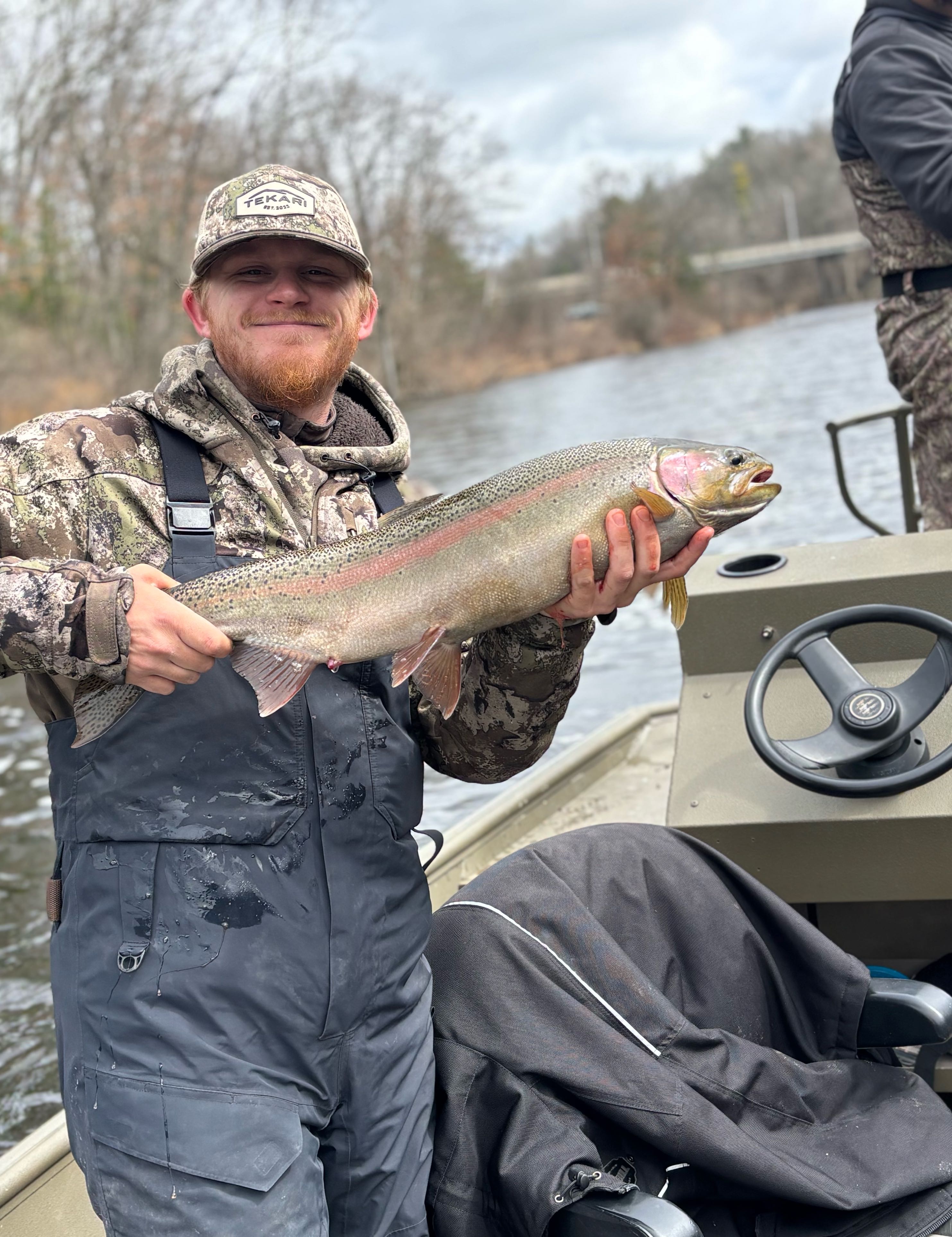 Picture this: You're standing in a pristine river, surrounded by Michigan's stunning fall colors. The crisp morning air carries the scent of pine as you cast your line, waiting for that telltale tug. Suddenly, your rod bends double - you're into a chrome-bright Chinook, fresh from Lake Michigan! Your guide - either Isaac, Matthew, or Jake - is right there, coaching you through the battle of a lifetime. With over 8 years of experience under their belts, these guys know every honey hole and trick in the book to put you on fish. It's just you and the river (no crowded boat here), giving you the freedom to really hone your skills and connect with nature.